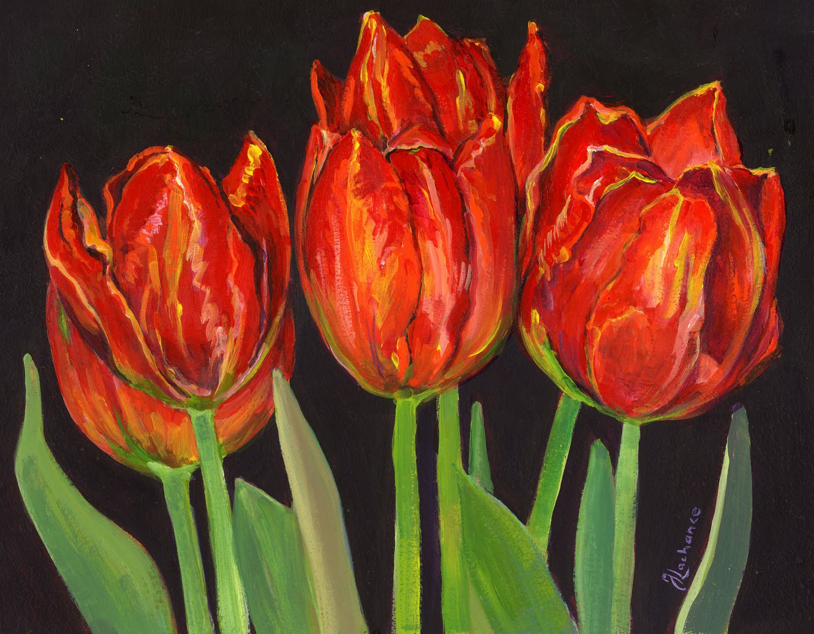 Акварельные картины с красными тюльпанами