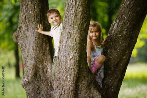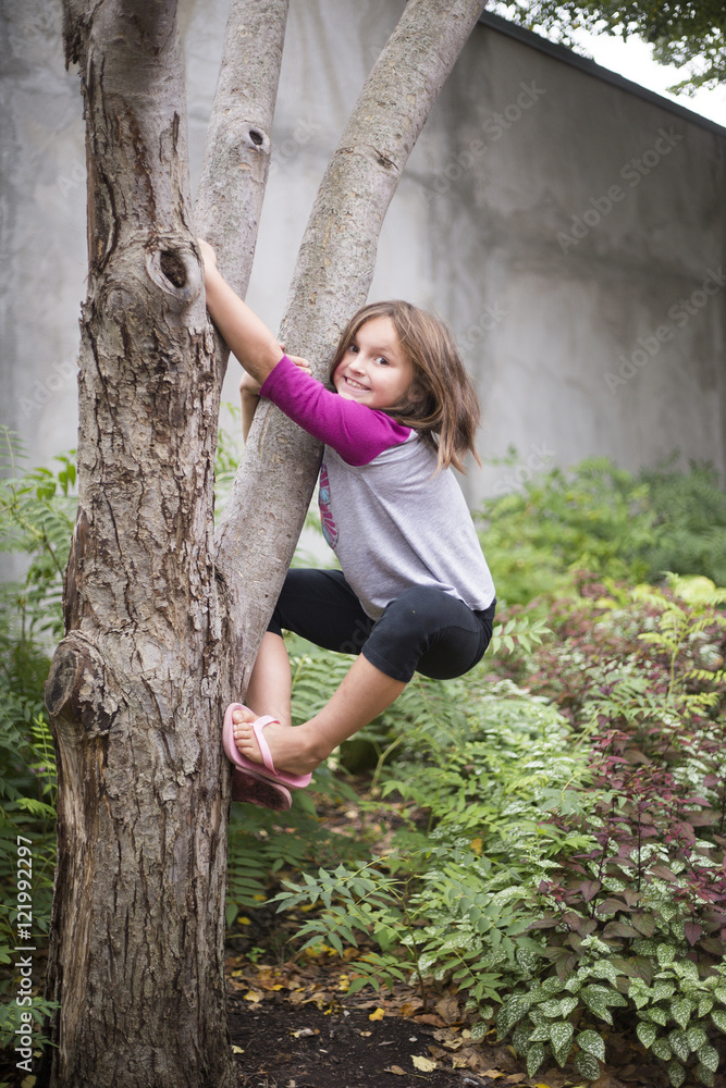 Детство на природе: Маленькая девочка на дереве