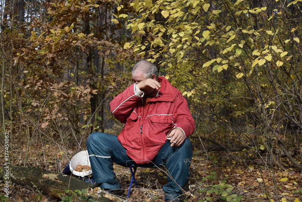 Осенний лес и пожилой мужчина: сцены уединения и покоя