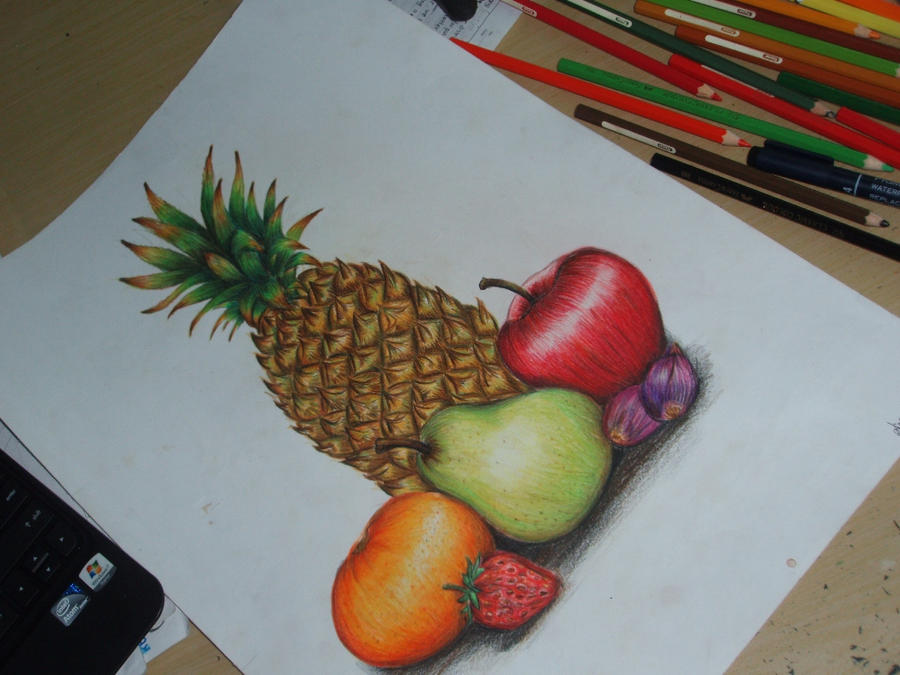 Учимся рисовать натюрморт с фруктами на столе