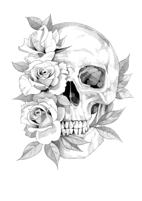 Эскизы татуировок: череп с розой на кисти