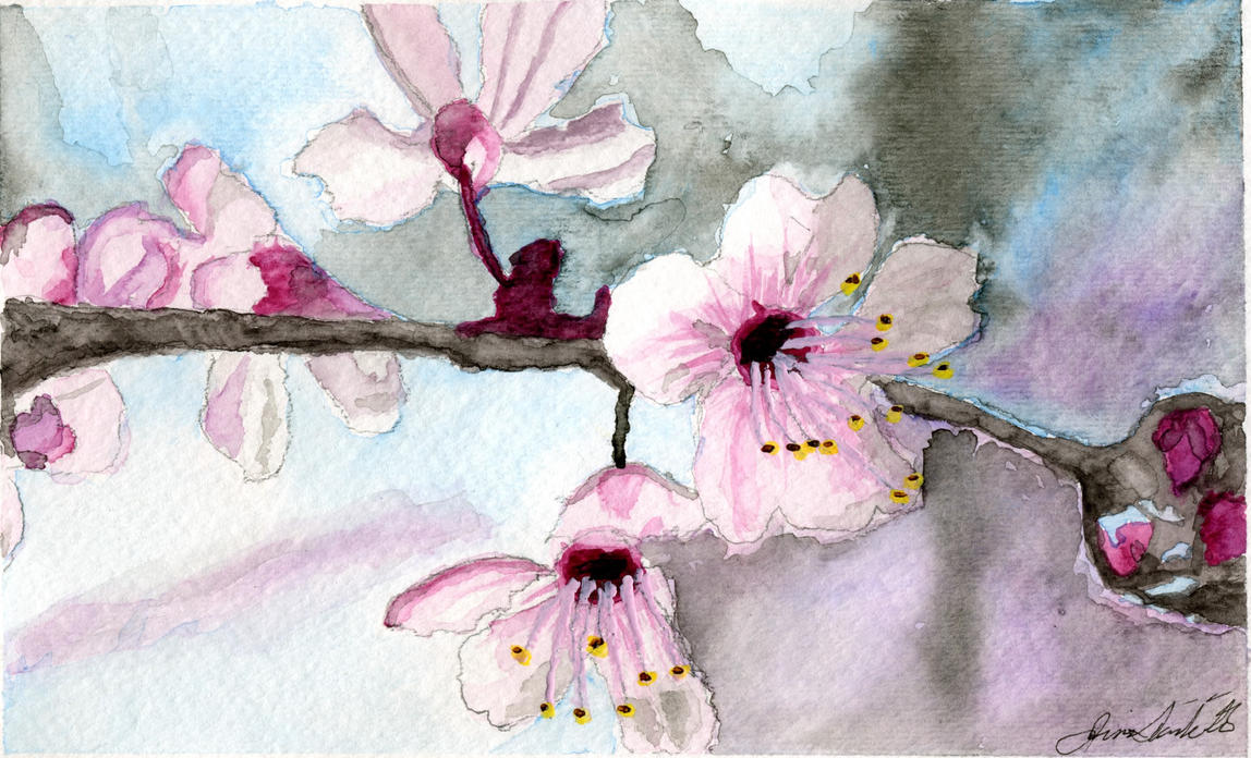 Рисунки веток с цветами карандашом